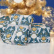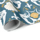 Modelado no antigo wallpaper damask, este padrão apresenta ilustrações de sereias e conchas em ouro branco e mostarda contra um fundo azul-lacre escuro. Esse papel de embrulho é perfeito para embrulhar presentes com um tema náutico ou para embrulhar um presente para seu fã favorito de sereias.