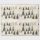 Uma paisagem de inverno pacífica com colinas cobertas de neve com árvores eververdes dispersas e folhas caducas com ramos nu. Os flocos de neve caem suavemente, criando uma atmosfera suave e calmante. A paleta de cores geral é mutada, com tons de branco, cinza, verde e marrom.