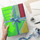 Isto tem um design de setas em várias cores com diferentes padrões.