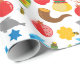 Padrão de excelente para embrulhar presentes de Rosh Hashanah. Shana Tova com símbolos judeus tradicionais em fundo branco.