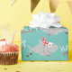 Este tubarão engraçado numa festa que te deseja um feliz aniversário.