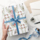 Esta divertida design de papel de embrulho de Natal apresenta uma prateleira vestindo um dentro de chapéu de Papai Noel uma bela coroa de Natal.