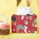 Pastores australianos lindos / Cães australianos em casacos pretos, marrons e de funil sentam-se em roupas festivas de férias. Chapéus de Papai Noel, chifres, suéteres em um fundo de férias com ornamentos espalhados.