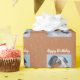 Pintura a óleo de um Pastor australiano com fundo azul e texto.