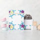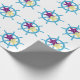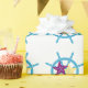 Blue shipwheel with a yellow and purple starfish for a cute nautical vibe.