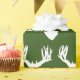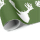 Silhueta de cervo branco sobre fundo verde da floresta.