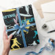 Um Divertido Papel De Surfe Em Silhuetas Amarelas, Azuis E Brancas Para O Aniversário