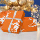O papel de embrulho de truques ou tratadores apresenta um fundo cor de laranja neon vibrante e uma silhueta épica de uma bruxa a brilhar durante a noite! Design do Halloween clássico por Alma Wad