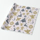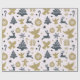 Papel De Presente Silhueta de Natal Elegante de ouro e azul