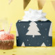 Este papel de embrulho de Natal apresenta silhuetas de pinheiro branco e pequenos flocos de neve brancos sobre um fundo azul escuro elegante e moderno.