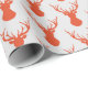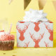 O invólucro festivo apresenta a cabeça de veado vermelha, silhuetas, padrão em fundo de cinza.