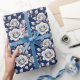 Silver And White Roses On A Royal Blue Background With A Subtle Metallic Sheen For A Sophisticated Effect