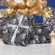 Um papel brilhante e brilhante de embrulho de Natal com um padrão festivo de decorações de árvores de Natal prateadas e baubles para adicionar alguma reluz e glamour ao seu presente de Natal que embrulha esta época de Natal.