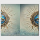Símbolo do olho do Egípcio, o Olho de Horus. A íris do olho brilha em um azul profundo e brilhante, lembrando os céus claros sobre o deserto. A imagem geral transmite uma sensação de sabedoria, proteção e espiritualidade, qualidades associadas ao olhar de todos os olhos