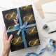 Símbolo infinito de joias Dourado com estrelas douradas sobre fundo preto. Design com estrela dourada.