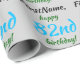 Este simples design de papel de empacotamento de aniversário apresenta uma mensagem como "FirstName, Happy 82° aniversário!", onde o nome e o número de aniversário podem ser personalizados. O fundo é uma cinza de luz colorida. Um papel de embrulho como este poderia talvez ser usado para embrulhar presentes que estão sendo dados para celebrar o aniversário de alguém. [~Z0000243]