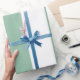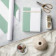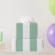 Papel de embalagem listrado e divertido, de forma verde e branca. As etiquetas de presentes de "alegria" estão disponíveis.