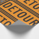 Um sinal de desvio em preto num fundo laranja. Este design parece realmente eficaz neste Papel de Invasão