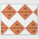 Um sinal de explosivos em fundo laranja. Este design parece realmente eficaz nestes papéis de enrolamento