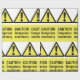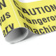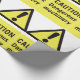 Um sinal amarelo que diz cuidado com máquinas perigosas. Este design parece realmente eficaz nestes papéis de enrolamento
