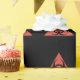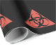 Símbolo de risco biológico triangular vermelho e preto sobre fundo preto