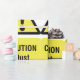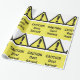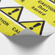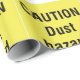 Um aviso que diz Caution Dust Hazard. Este design parece realmente eficaz nestes papéis de enrolamento