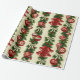Este papel de embrulho de Natal apresenta um padrão repetitivo de decorações clássicas de férias com uma estética distintamente vintage, contra um fundo branco pouco envelhecido. O design é dominado por elementos verticais que se assemelham a terras verdes ou a ramos, dos quais vários ornamentos são suspensos. Elementos proeminentes incluem: Sinos vermelhos: vários conjuntos de sinos vermelhos vibrantes, representados com um aspecto ligeiramente brilhante, metálico e superfícies internas brancas, estão agrupados, sugerindo um som de toque. Ornamentos vermelhos: ornamentos redondos, vermelhos, com detalhes brancos ou prateados (alguns riscados, alguns com padrões giratórios, outros com designs florais) pendurados nos ramos. Parecem ser de vidro ou plástico brilhante. Verde: agulhas verdes escuras e verdes formam a base das terras, fornecendo um cenário exuberante para os ornamentos mais brilhantes. Arcos brancos e Holly: Interpersados entre os verdes estão os delicados arcos brancos com múltiplos laços e borras de verde sagrado com frutos vermelhos brilhantes, acrescentando toques da cor e textura tradicionais. A impressão geral é de charme de eterno feriado, que lembra as decorações de Natal do médio-20-século, com uma textura ligeira ou de qualidade pareada para as ilustrações.