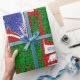 Esta imagem é um conjunto de skates de gelo nas cores de Natal de vermelho, verde e branco. Um fundo azul e branco com brilho foi adicionado a este design. Este pacote de presentes está disponível em estilos e tamanhos variados.