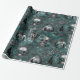 Papel De Presente Skull Witch Floral | Dark Gothic Midnight Teal