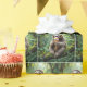 Uma preguiça é empoleirada num galho coberto de musgo, desfrutando de um cone sorvete arco-íris em uma selva esmagadora