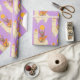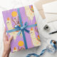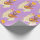 Design de um padrão bonito de uma preguiça bonitinha em um tutu ridin lama vestindo um chapéu de aniversário. Pálido fundo roxo. Todos os direitos reservados. Arte e design por Mira