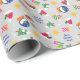 Papel personalizado de empacotamento de presentes de natal, ao qual você pode adicionar uma repetição de ou para mensagem. O design tem um padrão festivo de festas de neve, chapéus de natal, árvores de natal, presentes de natal e estrelas ouros.