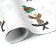 Um design divertido com um bonitinho de neve em um toque, cachecol fazendo artes marciais. Ele está vestindo um cinto preto.