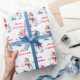 Um design de papel de embrulho divertido para o Natal, com um padrão repetido de um bonitão de neve em estilo aquarela e saudação de "Feliz Natal" em tipografia vermelha. Ideal para embrulhar seus presentes festivos e recheadores.