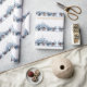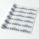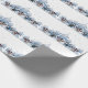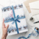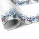 Este é um rolo de papel de embrulho de presentes de Natal com bonitos bonitos bonitinhos de neve e renas dançando ao redor de árvores de abeto. O esquema de cores é azul frio.