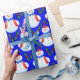 Torne qualquer presente mais especial com esse costume e um papel de embrulho com moedor de neve sorridente e folhas de Holly sobre fundo azul. Aproveite!