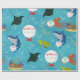 Papel embrulhado sob o tema do mar apresenta animais marinhos com bolhas d'água #papel embrulho #animais #oceano #tubarão #polvo #caranguejo #escumalha #marceneiro #marceneiros #marceneiros #marisco #peixepeixe #tartaruga #cachorrinhos #aniversário #aniversários #garismo #crianças #azuis