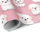 A imagem mostra um padrão repetitivo de adoráveis e fofos do Bichon Frise em um fundo rosa, intercalados com pontos brancos