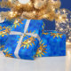Um sol dourado luxuoso em um azul profundo rippled o fundo, para esse presente especial.