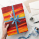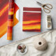 Este design apresenta uma imagem de nuvens em vários tons de amarelo e laranja sobre um fundo vermelho. É uma bela cena do pôr do sol.