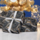 This elegant wrapping paper features a sophisticated abstract design with swirling patterns in shades of dark gray, black, and metallic gold. The luxurious gold accents create a striking contrast against the deep tones, evoking a sense of mystery and richness. Perfect for special occasions, this modern and chic paper adds a touch of drama to any gift, making it ideal for those who appreciate contemporary artistry and refined aesthetics.