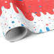 Este papel de embrulho tem design sorvete americano com sorvetes vermelhos, brancos e pistas derretendo e borrachas coloridas divertidas. Você também pode fazer o padrão do sorvete no papel de embalagem pequeno ou maior. Invólucro do excelente para qualquer evento vermelho, branco e azul.