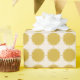 Embalagem de presente de Natal. Creme e ouro. Formas de bolinhas.