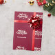 Um pano de fundo burro, texto colorido creme. Feliz Natal é escrito com uma fonte retrô do estilo 70. Personalize e adicione seu nome de família.