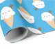 Um padrão repetido de cones clássicos de sorvete de baunilha "99" britânicos com floco de chocolate, estilo kawaii, sobre um fundo azul brilhante. O doce e perfeito travesseiro de verão.