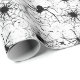 Creepy seamless Halloween pattern featuring black spiders, spider webs, and ink splatters on a white background — perfect for spooky-themed occasion.