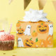 Use este papel de embrulho do Dia das Bruxas com uma pilha assustadora ou uma lanterna e fantasma assustador em fundo laranja quando você dá a sua família ou amigos um presente assustadoramente assustador neste Halloween