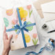 Wrap your Easter gifts in this charming wrapping paper. This paper features adorable baby farm animals alongside colorful Easter eggs, and red tulip flowers creating a delightful pattern perfect for holiday gifts and home decorations.