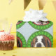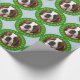 Um St Bernard bonito decked para fora em uma grinalda vermelha e verde brilhante do Natal.