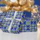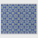 A stained glass style pattern of shades of blue and yellow decorates this gift wrap. AI-generated by IveyCottage.